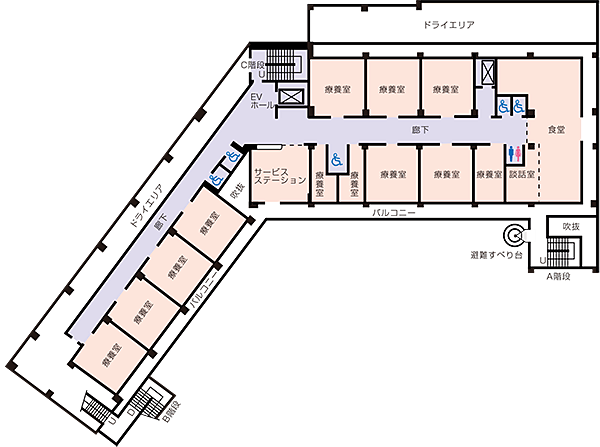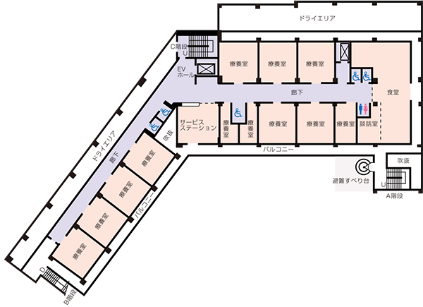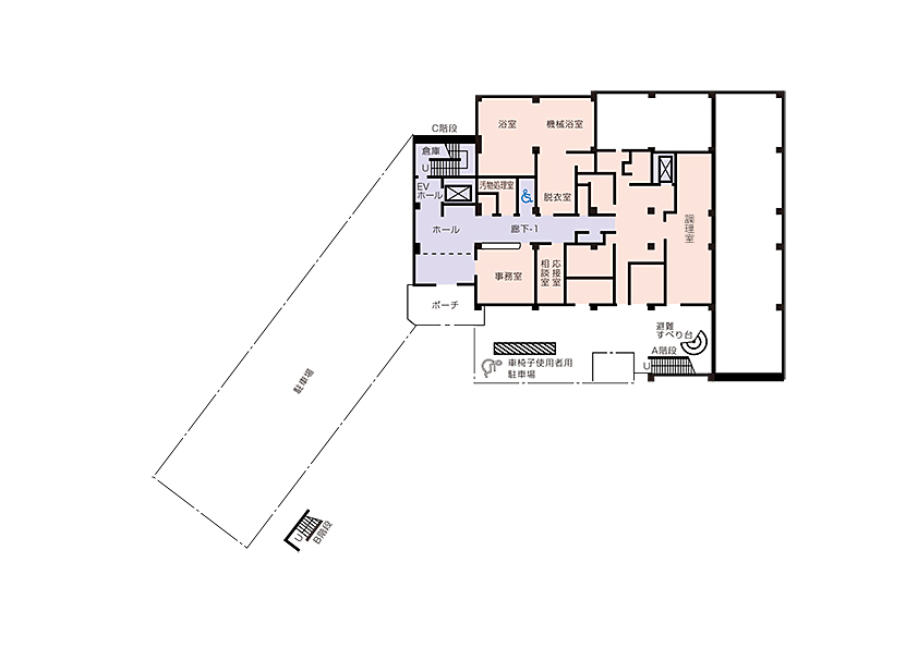通所デイルーム・レクリエーションルーム・機能訓練室・診察室
